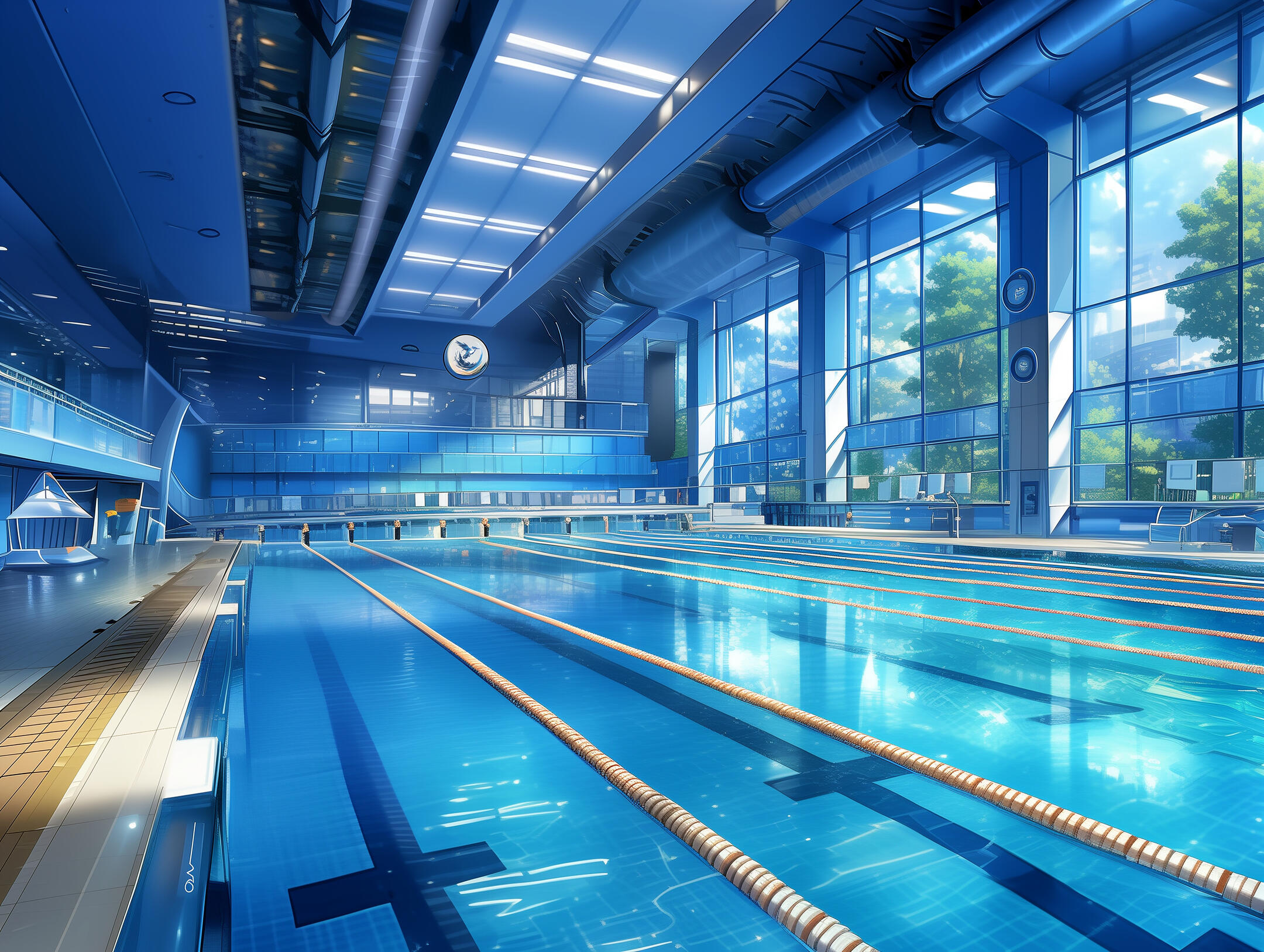 The two-story glass building overlooks the sports fields. Inside there's an Olympic-sized swimming pool, basketball court, fencing room, and a separate track building with an outdoor field.The facility also has a full gym with AR mirrors and a climbing wall, plus nutritionists and therapy rooms. The university clinic is located here too, with medical staff trained in human, demi-human, and supernatural physiology ready to help.Specialized training areas include reinforced equipment for strength-enhanced individuals and energy containment zones for safe power practice.