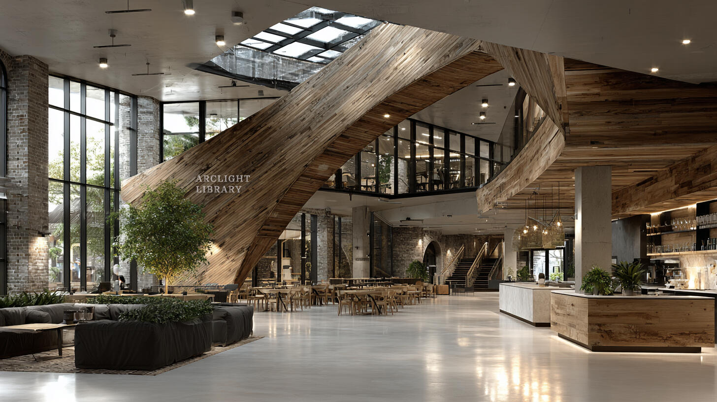 The social heart of campus. The open layout has bridges between levels and plants everywhere.There's a food hall with cuisine from around the world, lounge areas with gaming setups, offices for student businesses, and an amphitheater for events and debates.Dietary stations now accommodate supernatural nutritional needs, and quiet sensory-friendly zones provide refuge for those with heightened perception abilities.